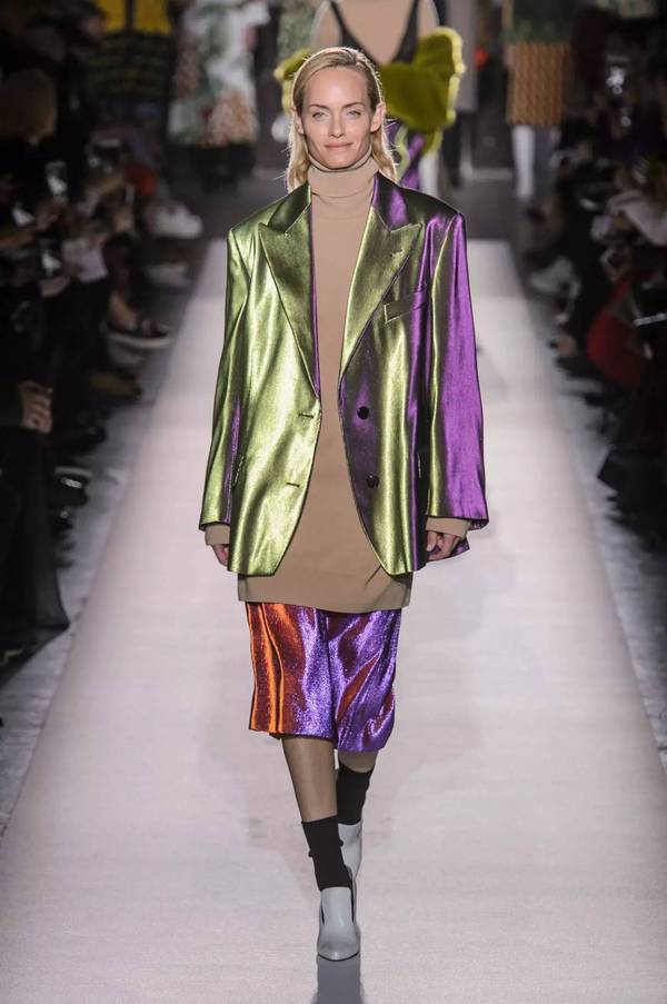 電影中外星神秘光影是吸引人眼球的地方,同時(shí)具有暗夜感的光感面料也是17/18AW秀場趨勢重點(diǎn),隨著光線移動呈現(xiàn)不同的光澤,為面料注入新意,更為面料提亮出奢華新質(zhì)感。